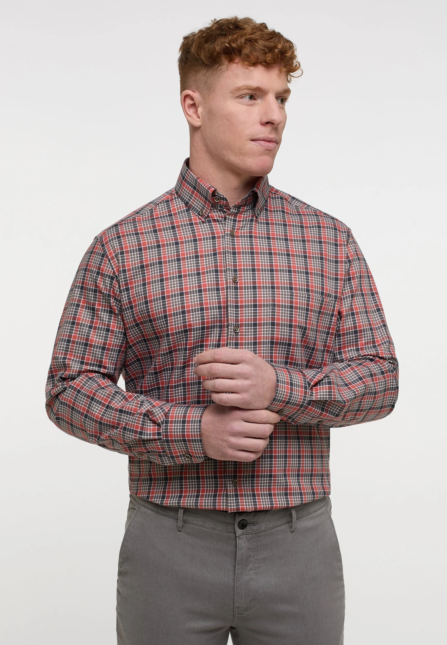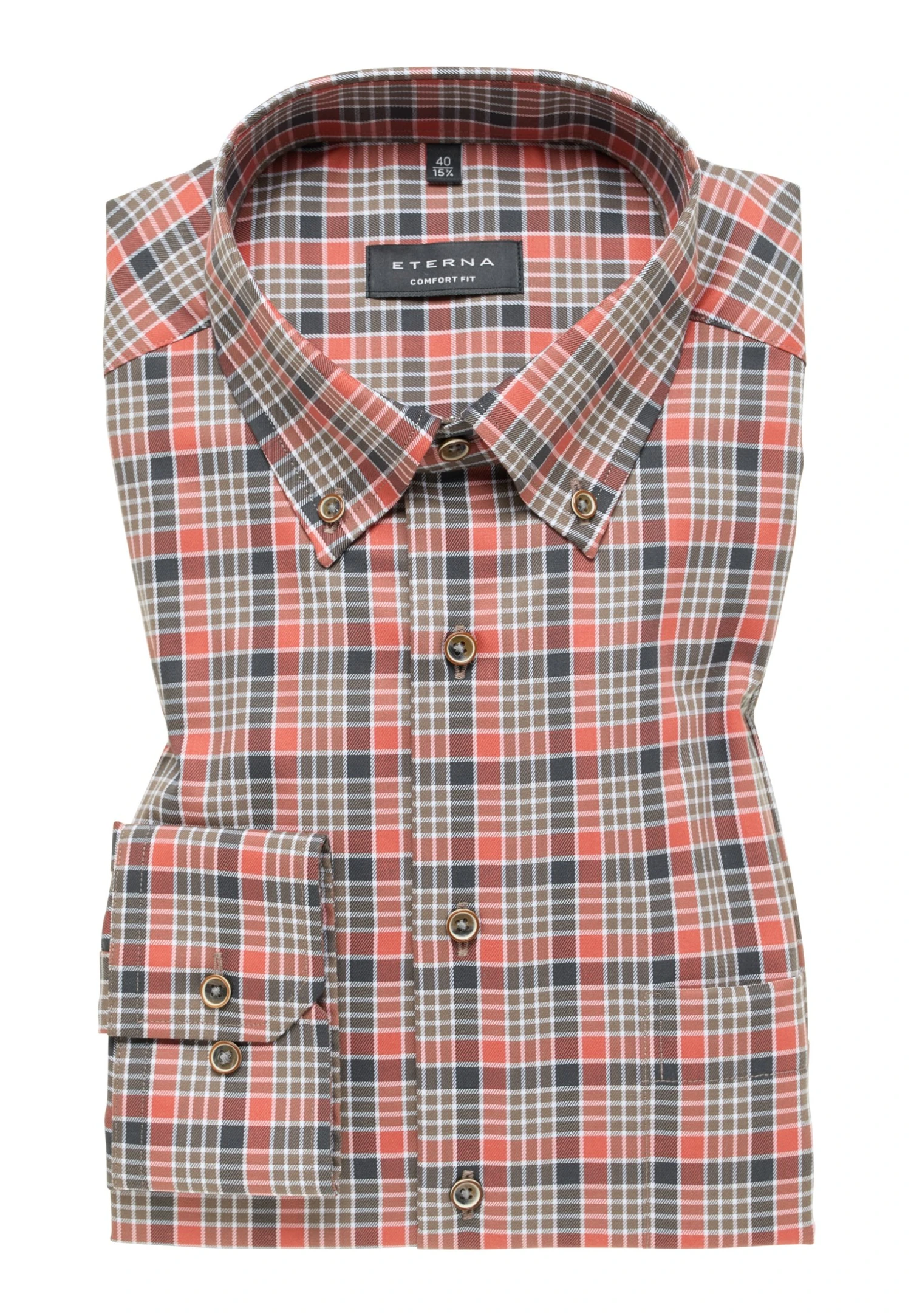 Eterna Kariertes Comfort Fit – Overhemd – Rusty Red